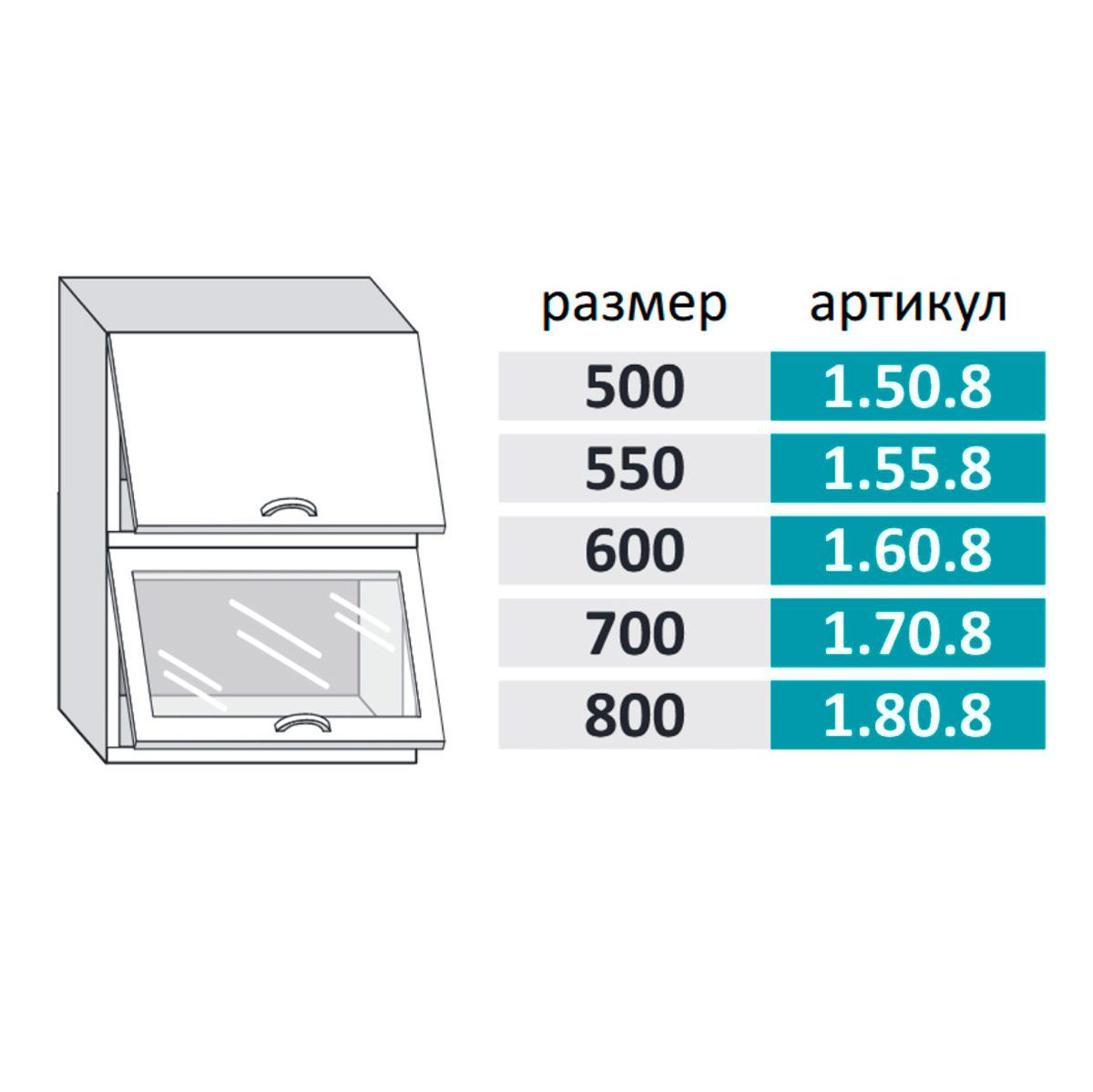 Имя для кухонного модуля: 1.55.8 Шкаф настенный (h=720) на 550мм с 2-мя горизонтальными дверцами, 1-ой стеклянной дверцей