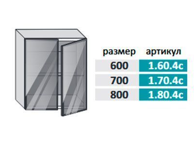 Имя для кухонного модуля: 1.80.4с Шкаф настенный (h=720) на 800мм с 2-мя стеклянными дверцами