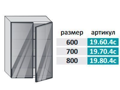 Имя для кухонного модуля: 19.80.4с Шкаф настенный (h=913) на 800мм с 2-мя стекляной дверцами