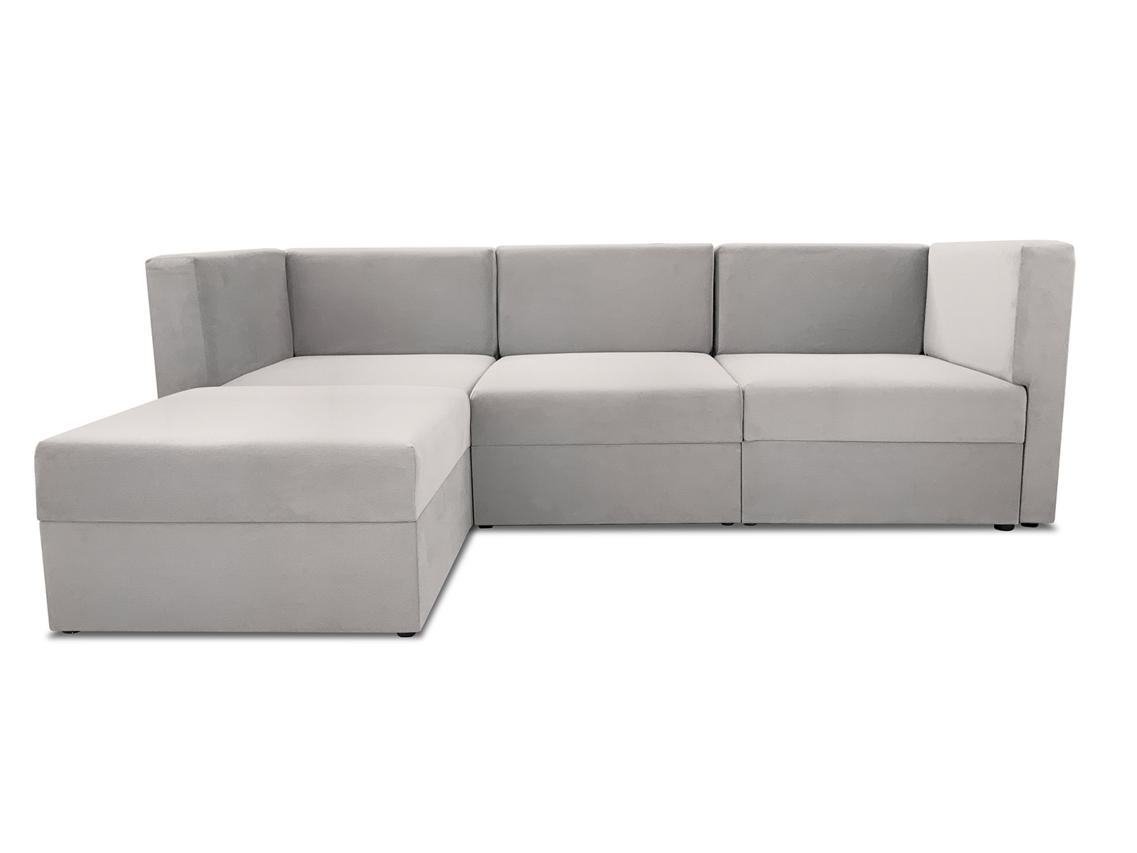 Диван состоит из секций: два угловых модуля, один прямой модуль, один пуф