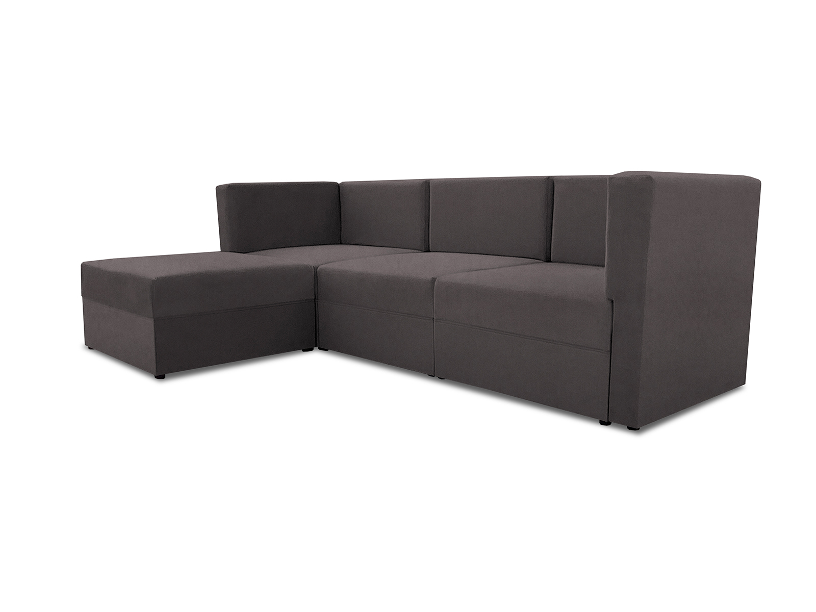 Диван состоит из секций: два угловых модуля, один прямой модуль, один пуф