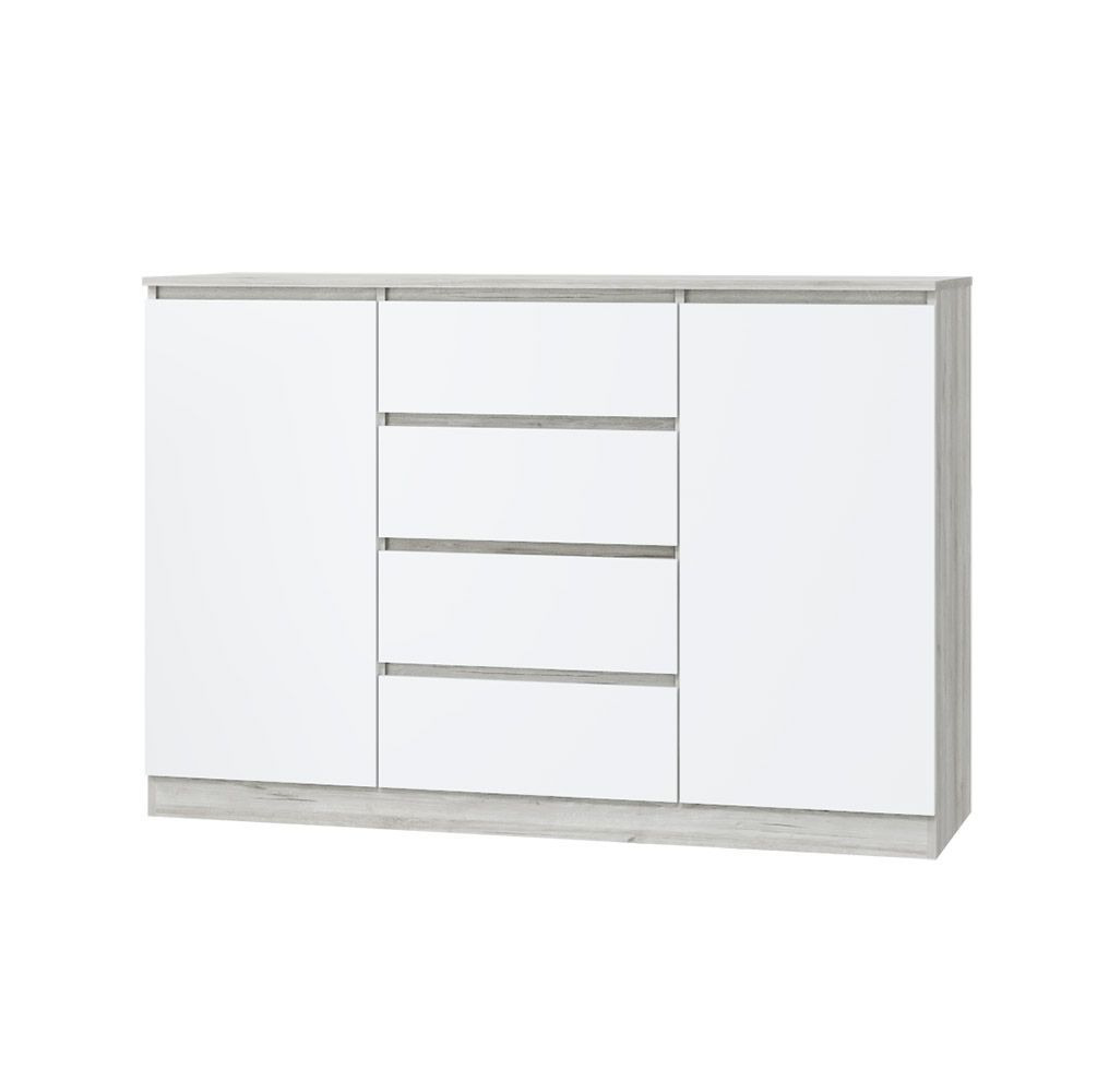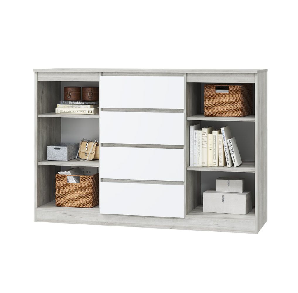Комод Лори, 2 дверки и 4 ящика, дуб серый/белый