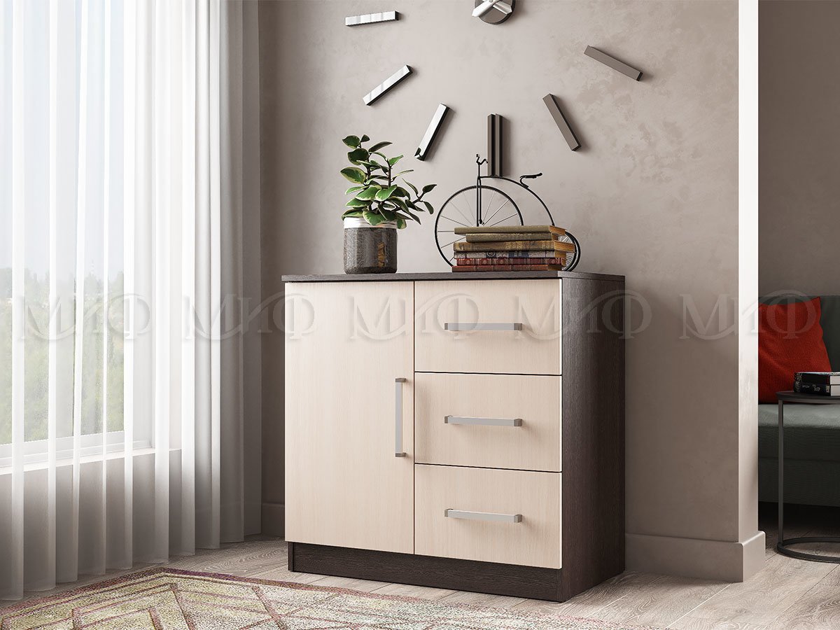 Комод с 3-мя ящиками и дверью Бася дуб беленый/венге