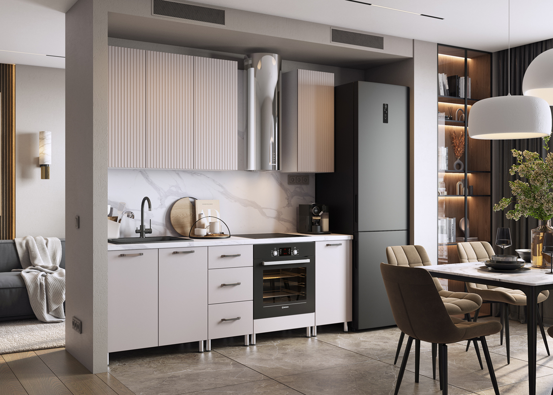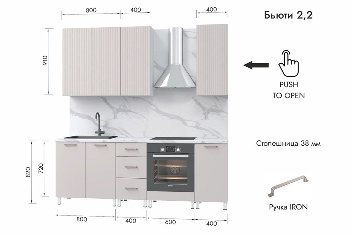 Кухня Бьюти 2,2 м, белый/сантьяго/гранит белый №327