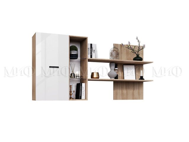 Шкаф навесной с полкой Нэнси New ЛДСП Белый глянец/Сонома