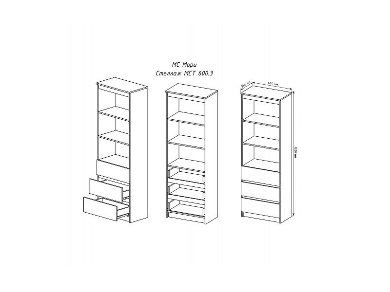 Стеллаж 3 ящика Мори МСТ600.3 белый