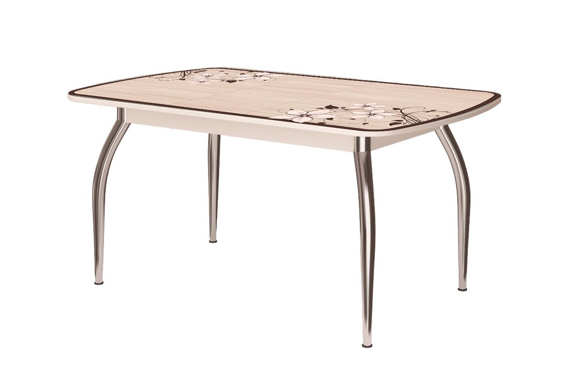 Стол Бостон-3 раздвижной, Цветы, фотопечать/хром триумф