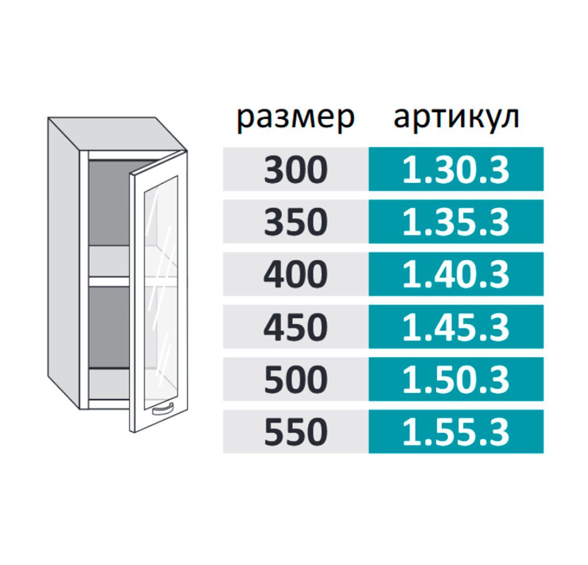 Имя для кухонного модуля: 1.45.3 Шкаф настенный (h=720) на 450мм с 1-ой стеклянной дверцей