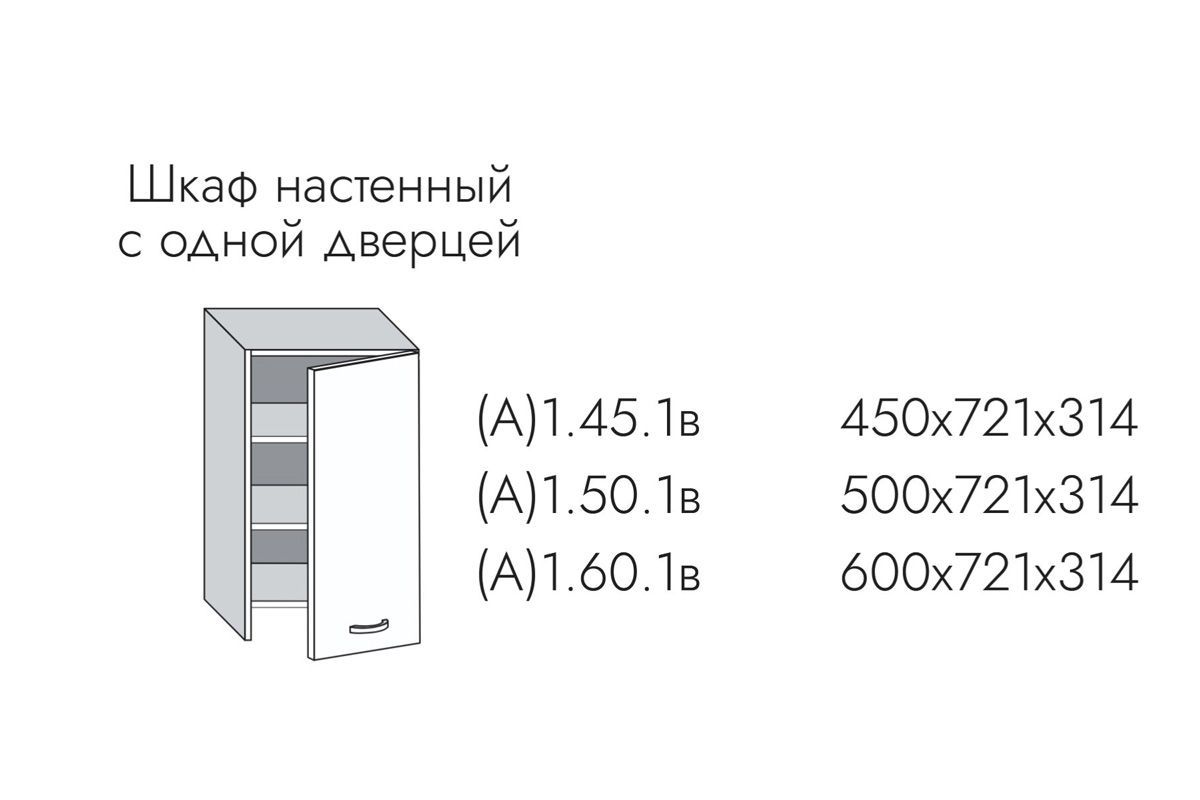 1.60.1в Грейс Шкаф настенный полноразмерный (h=721) на 600мм с 1-ой дв. под вытяжку
