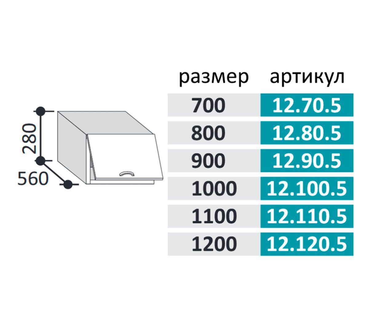 Имя для кухонного модуля: 12.70.5 Шкаф настенный глубокий (h=280) на 700 с 1-ой горизонтальной дверцей