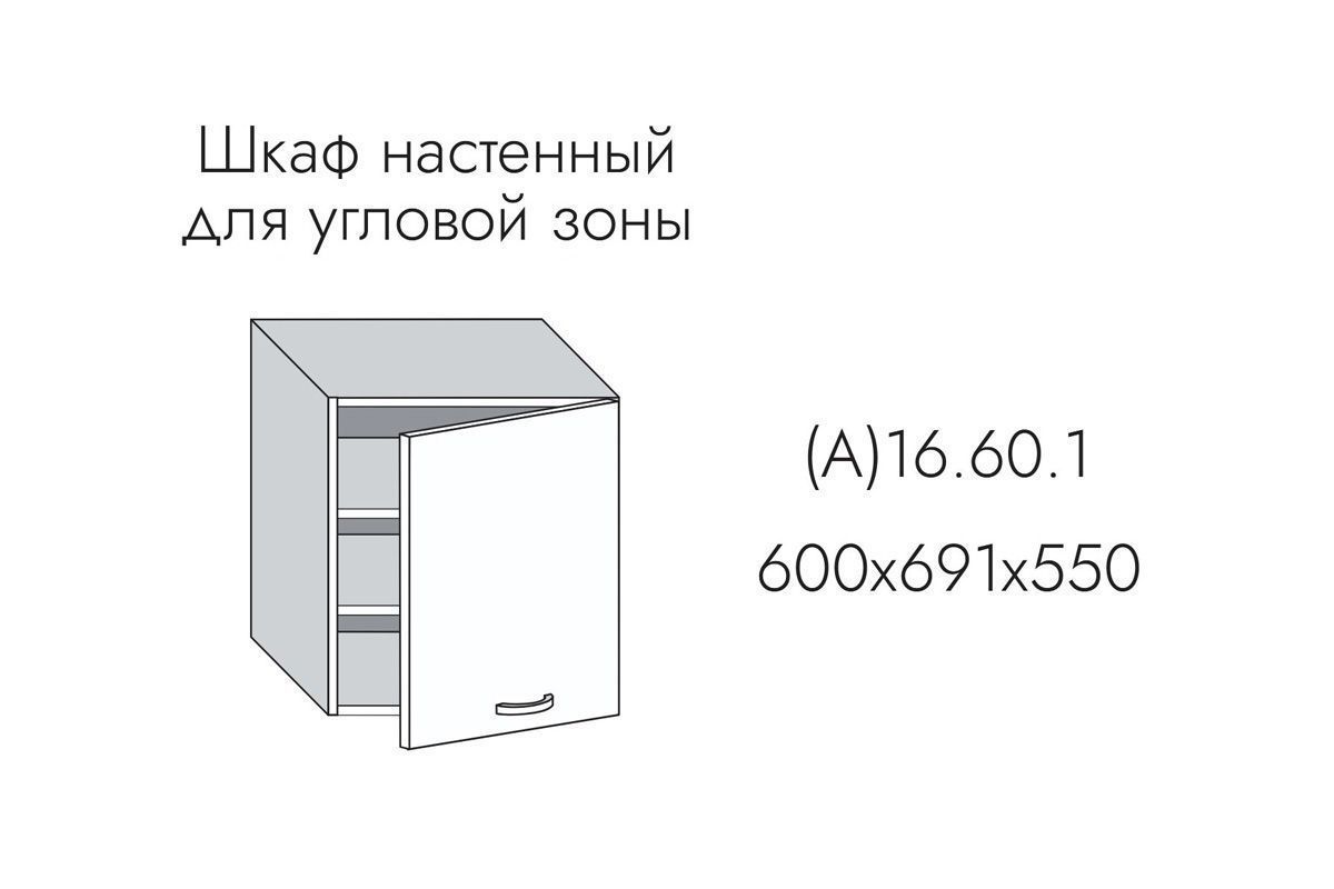 Имя для кухонного модуля: 16.60.1 Шкаф настенный 600мм для угловой зоны 691*600