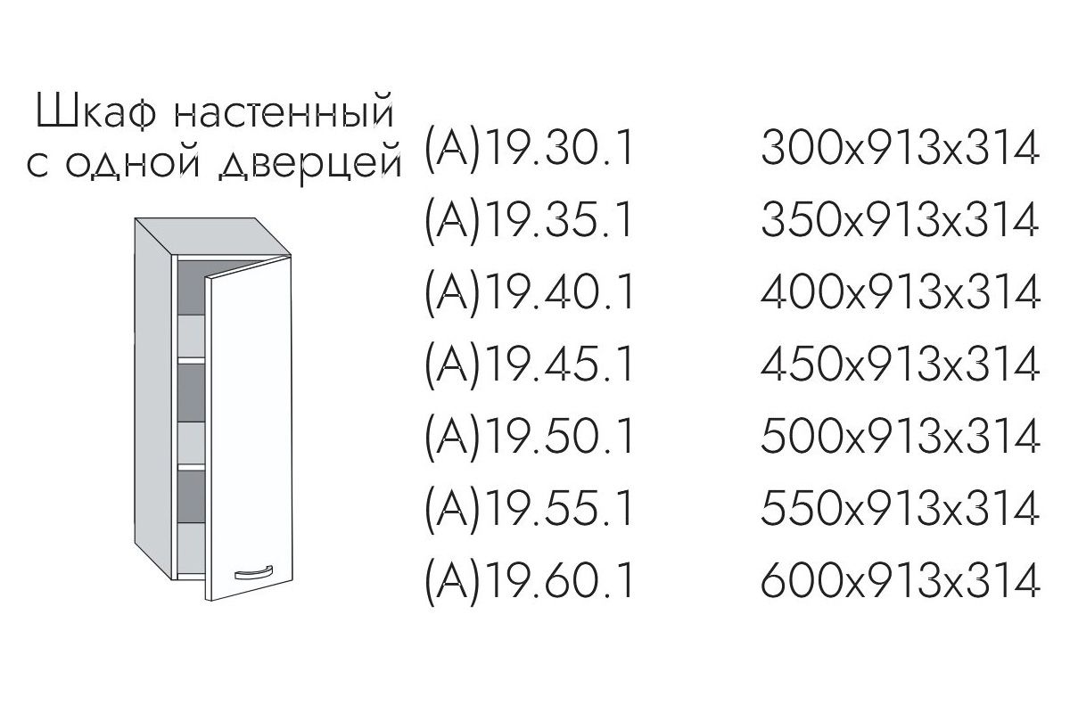 Имя для кухонного модуля: 19.60.1 Шкаф настенный (h=913) 600мм с 1-ой дверцей