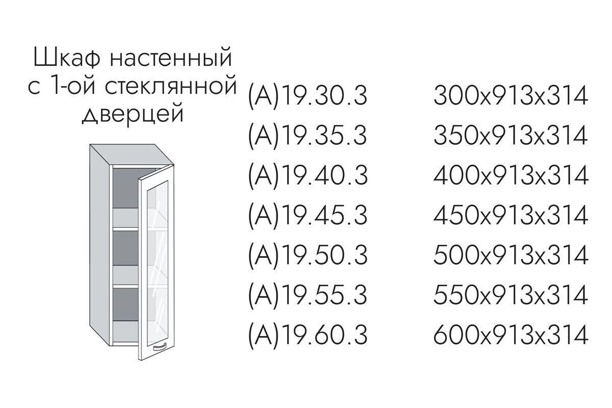 19.60.3 Эвелин Шкаф настенный (h=913) на 600мм с 1-ой стекл. дверцей