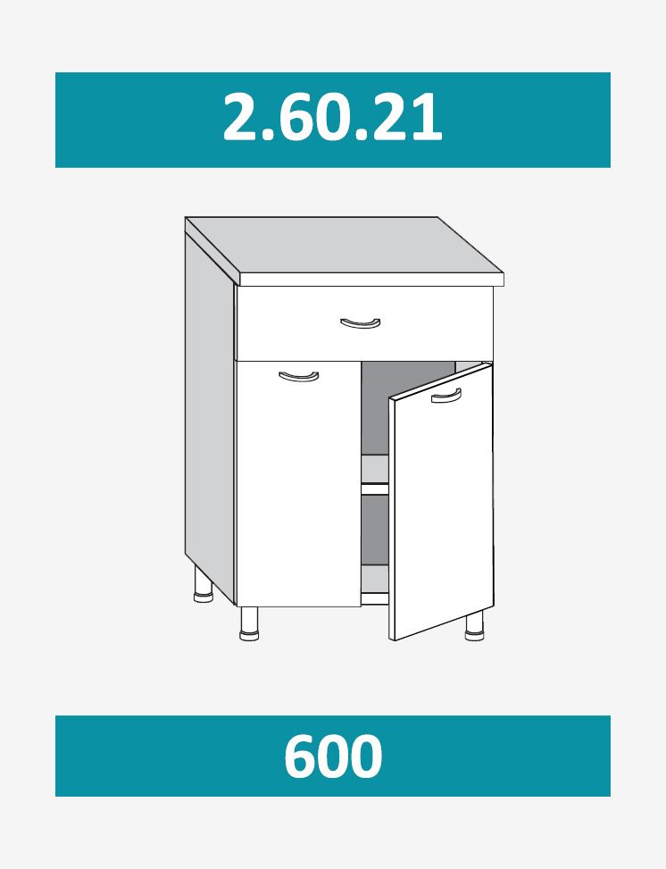 2.60.21 Шкаф-стол на 600мм с 1-м ящиком и 2-мя дверцами