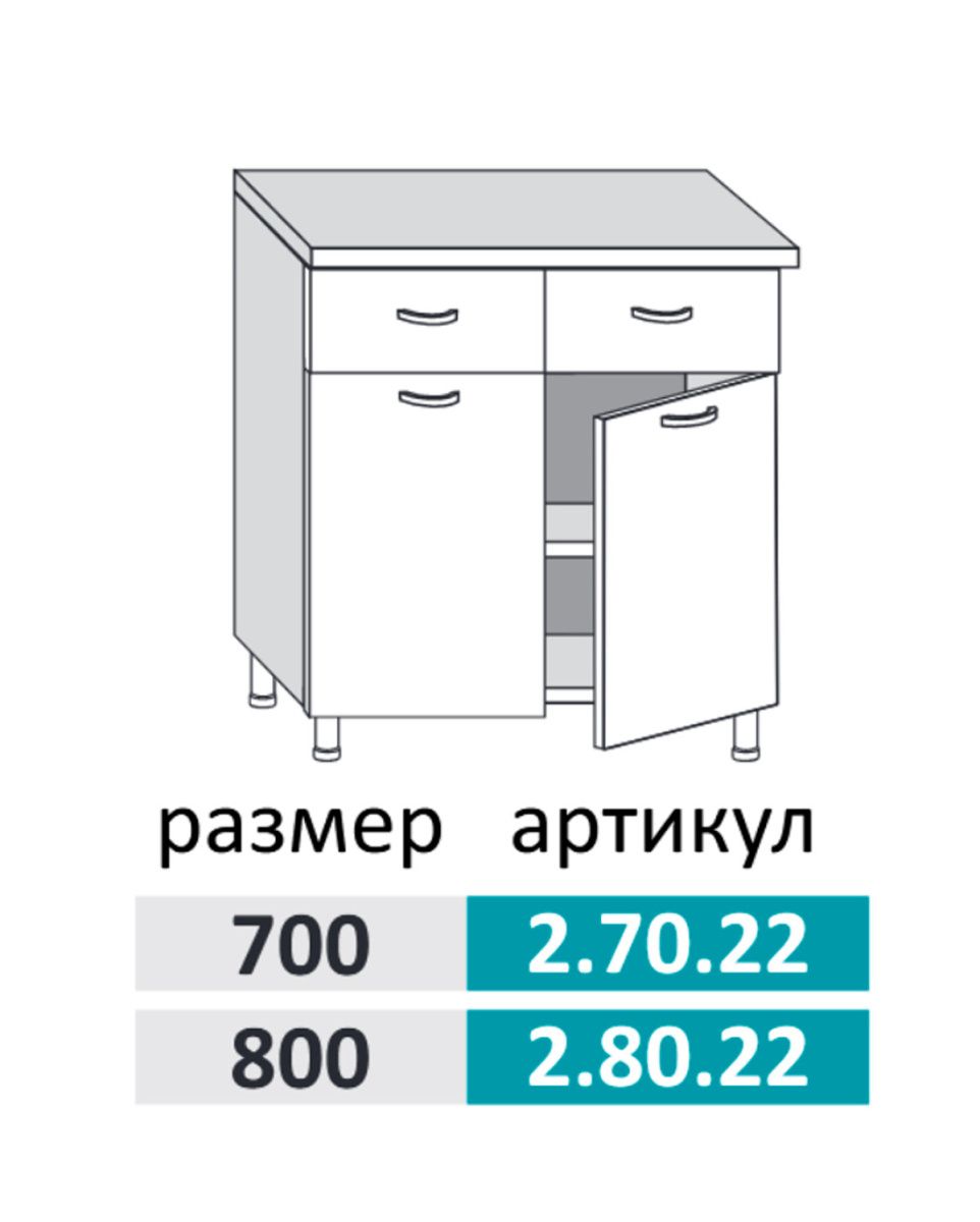 2.70.22 Шкаф-стол на 700мм с 2-я ящиками и 2-мя дверцами