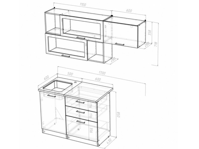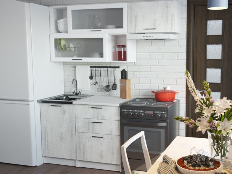 Внимание: стеновая панель, мойка, смеситель и посудосушители в комплекты гарнитура не входят.
