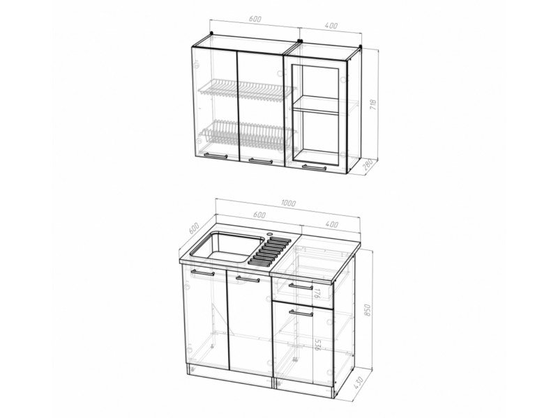 Внимание: стеновая панель, мойка, смеситель и посудосушители в комплект гарнитура не входят.