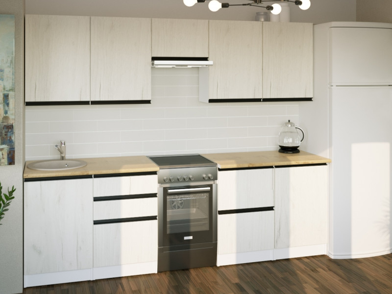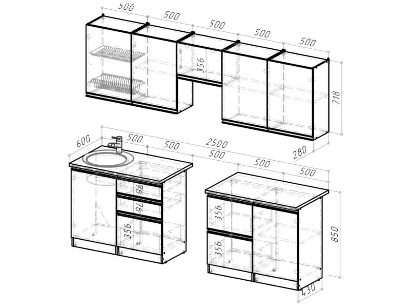 Внимание: стеновая панель, мойка, смеситель и посудосушители в комплекты гарнитура не входят.