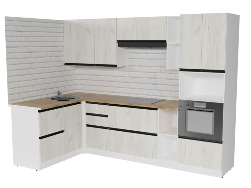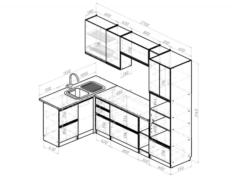 Внимание: стеновая панель, мойка, смеситель и посудосушители в комплекты гарнитура не входят.