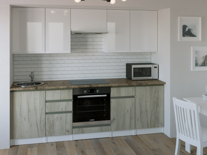 Внимание: стеновая панель, мойка, смеситель и посудосушители в комплекты гарнитура не входят.