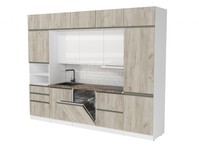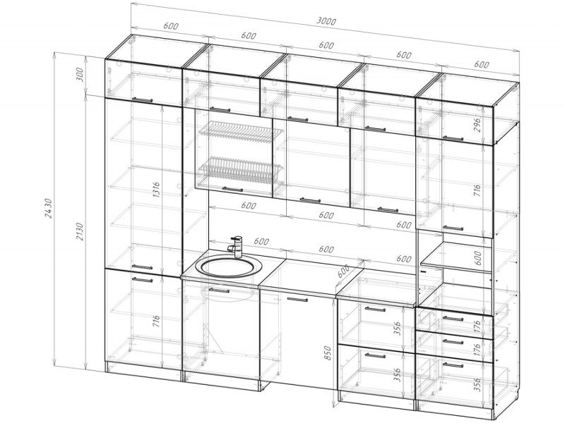 Внимание: стеновая панель, мойка, смеситель и посудосушители в комплекты гарнитура не входят.