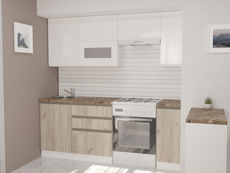 Внимание: стеновая панель, мойка, смеситель и посудосушители в комплекты гарнитура не входят.