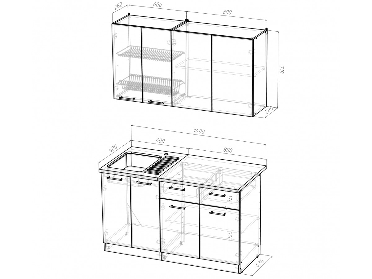 Внимание: стеновая панель, мойка, смеситель и посудосушители в комплекты гарнитура не входят.