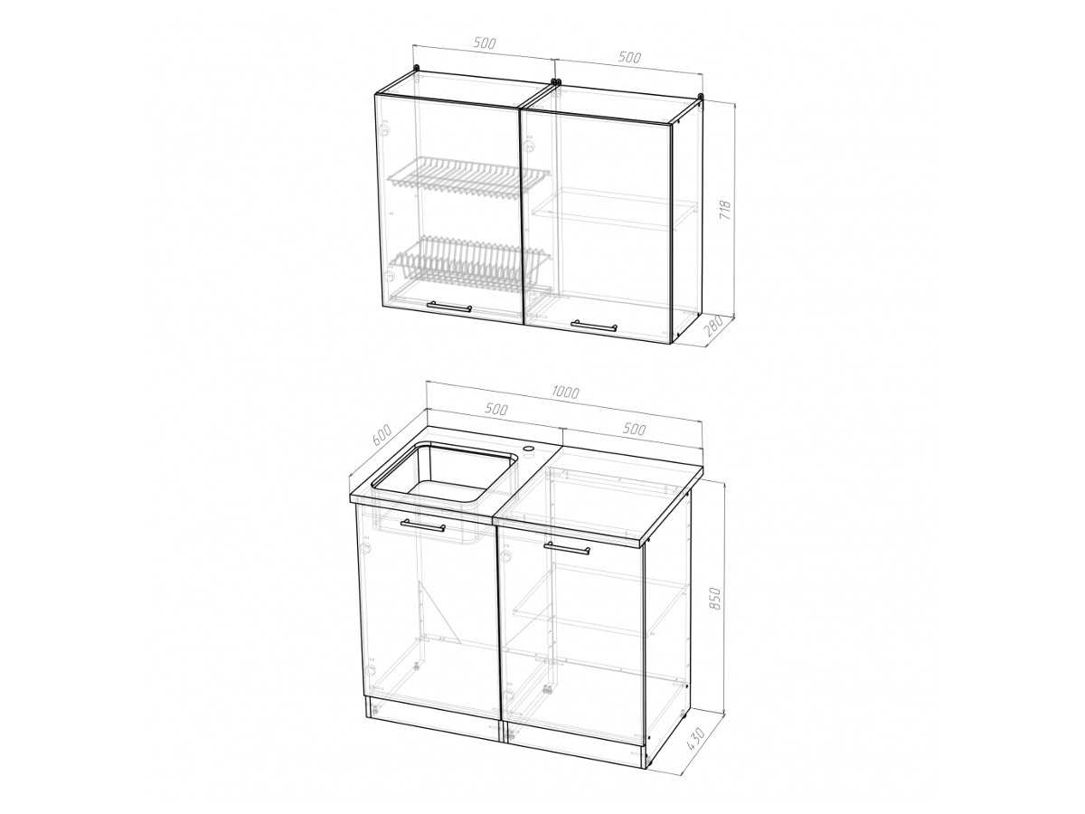 Внимание: стеновая панель, мойка, смеситель и посудосушители в комплекты гарнитура не входят.
