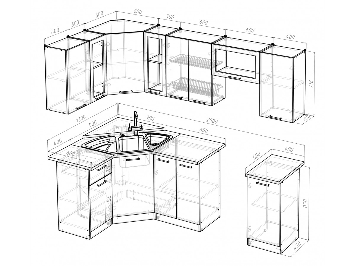Внимание: стеновая панель, мойка, смеситель и посудосушители в комплекты гарнитура не входят.