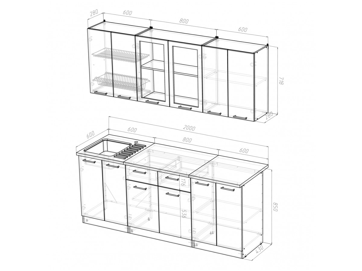 Внимание: стеновая панель, мойка, смеситель и посудосушители в комплекты гарнитура не входят.