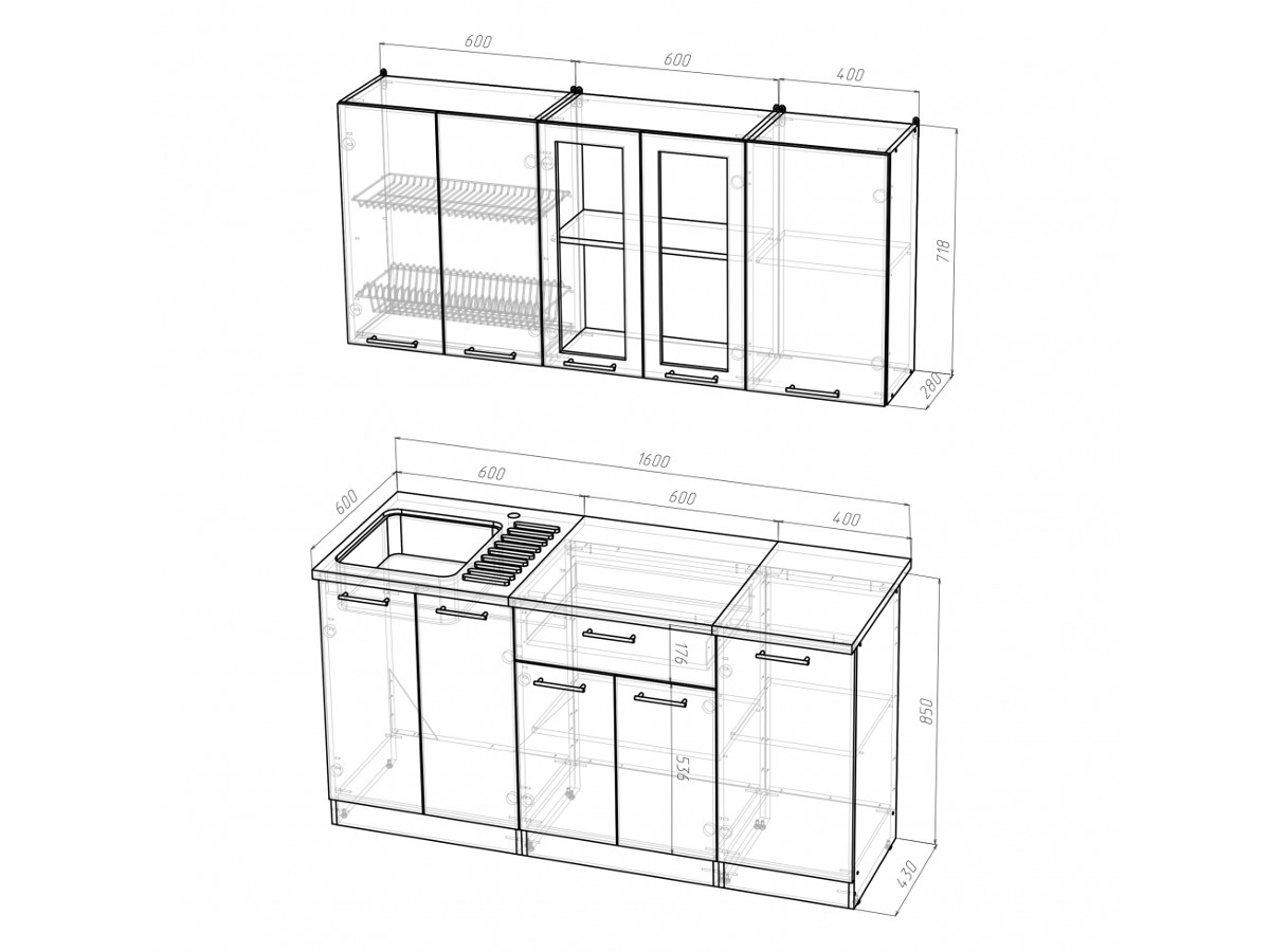 Внимание: стеновая панель, мойка, смеситель и посудосушители в комплекты гарнитура не входят.