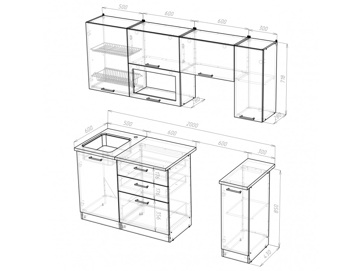 Внимание: стеновая панель, мойка, смеситель и посудосушители в комплекты гарнитура не входят.