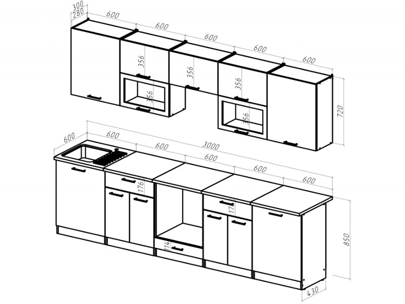 Внимание: стеновая панель, мойка, смеситель и посудосушители в комплекты гарнитура не входят.