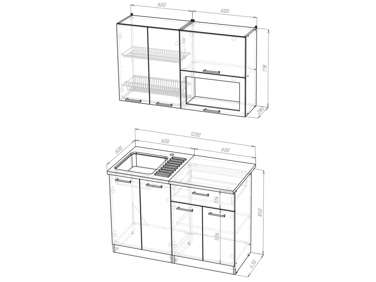 Внимание: стеновая панель, мойка, смеситель и посудосушители в комплекты гарнитура не входят.
