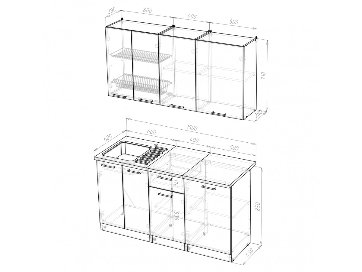 Кухонный гарнитур Лариса нормал 1 1500 мм