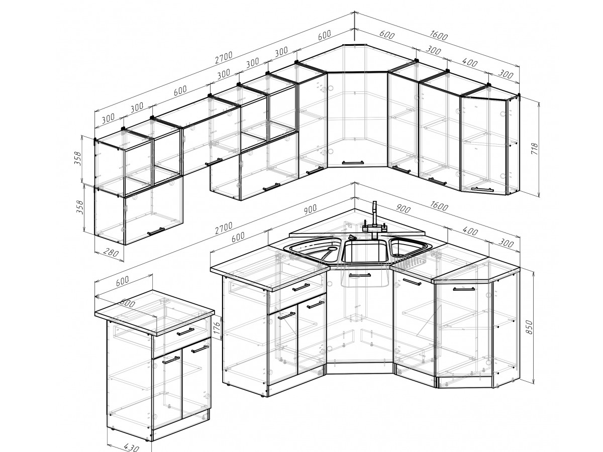 Кухонный гарнитур Лариса оптима 5 2700х1600 мм