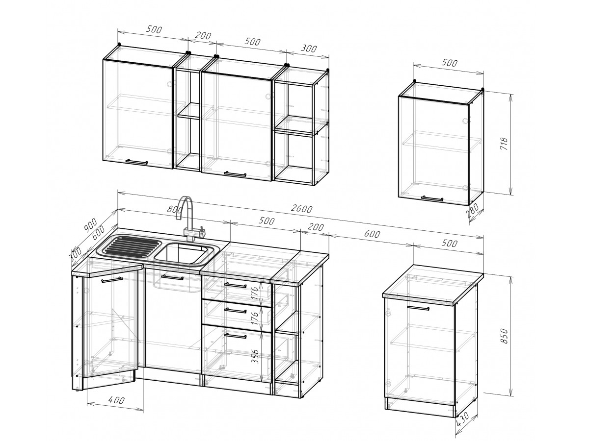 Кухонный гарнитур Лариса прайм 4 900х2000 мм
