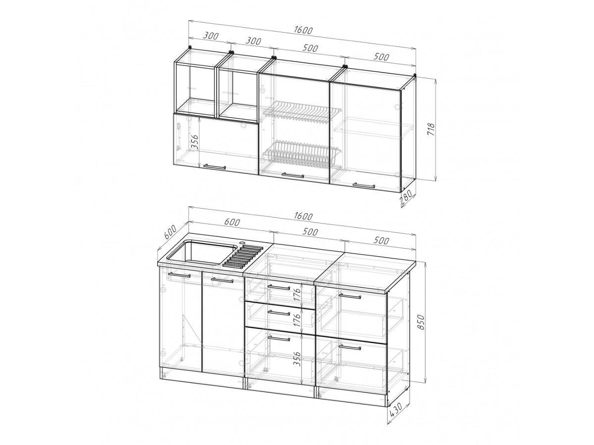 Кухонный гарнитур Лариса стандарт 4 1600 мм