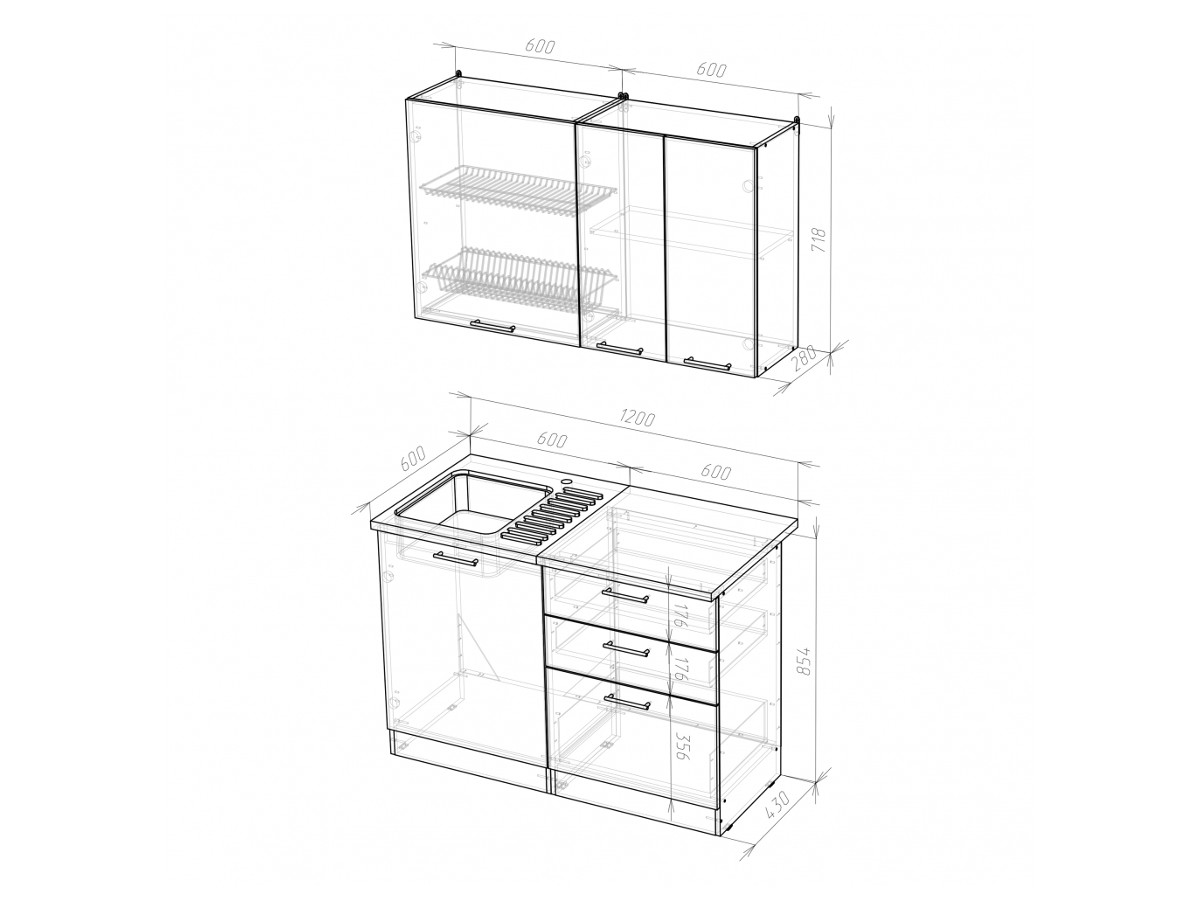 Внимание: стеновая панель, мойка, смеситель и посудосушители в комплекты гарнитура не входят.