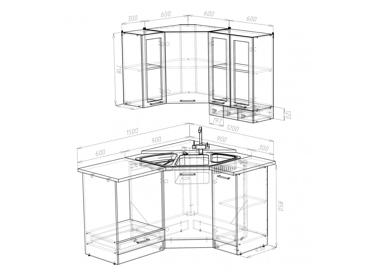 Кухонный гарнитур Лира литл 1500х1200 мм