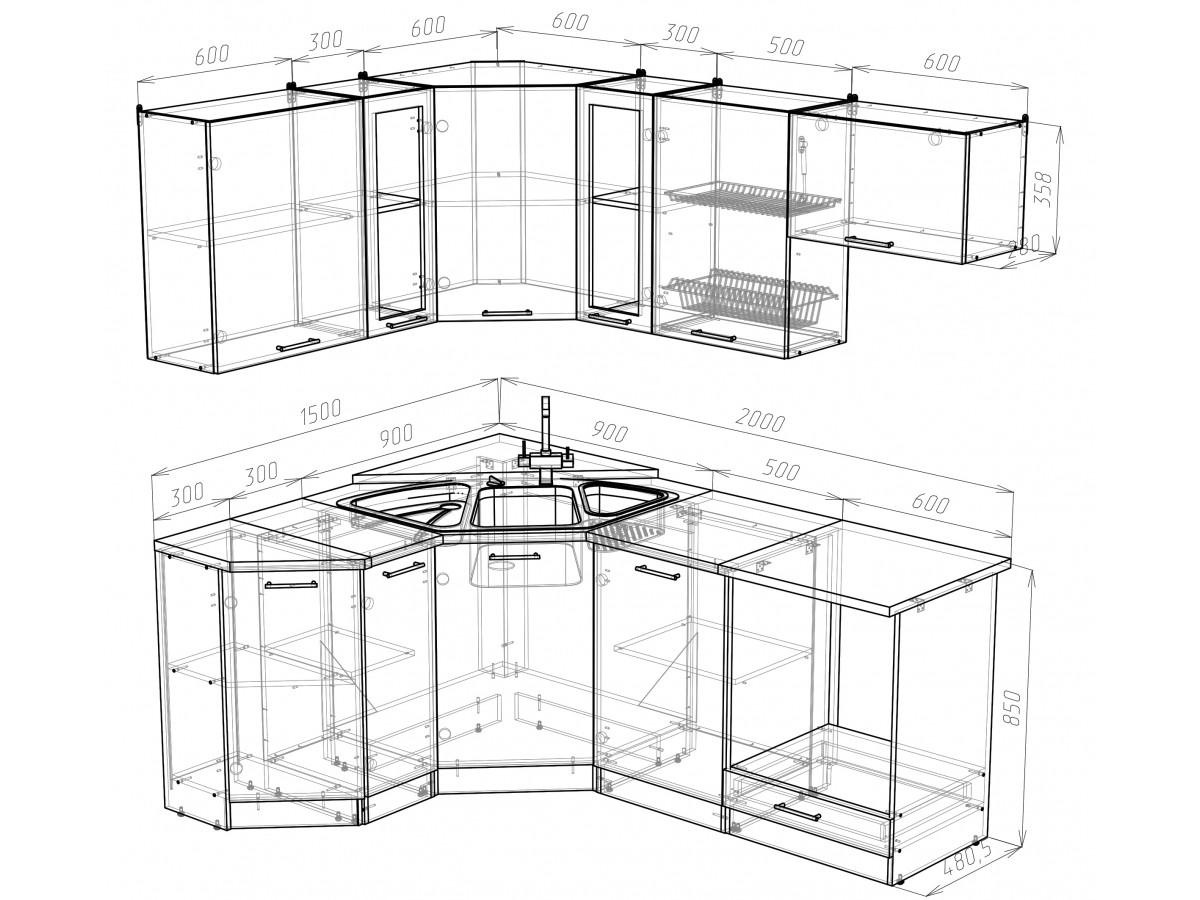 Кухонный гарнитур Лира мега оптима 2000х1500 мм