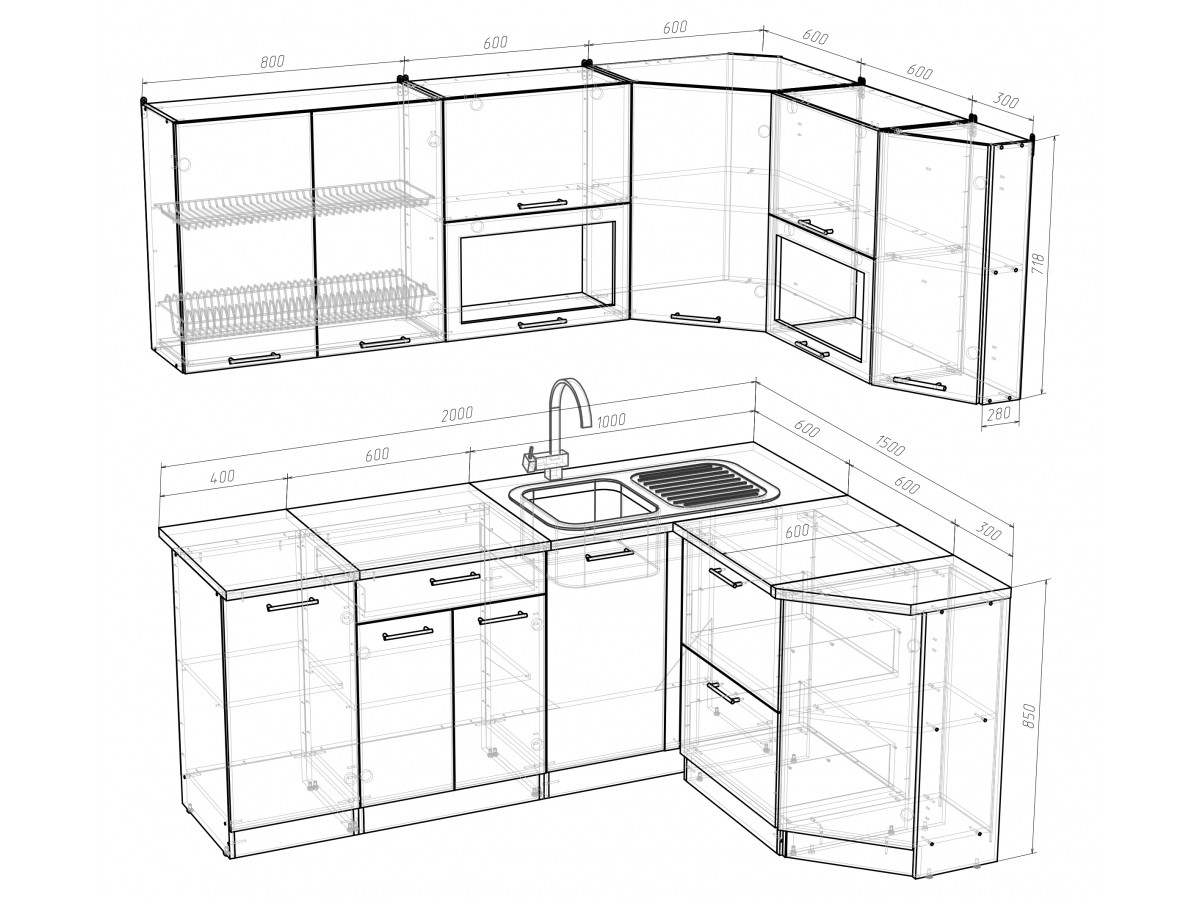 Кухонный гарнитур Лира мега прайм 2000х1500 мм