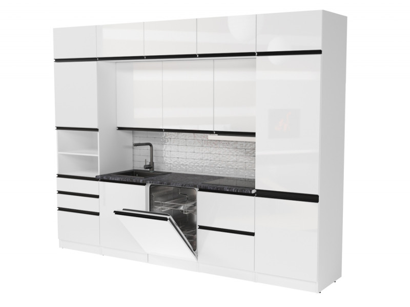 Внимание: стеновая панель, мойка, смеситель и посудосушители в комплекты гарнитура не входят.