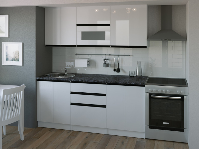 Внимание: стеновая панель, мойка, смеситель и посудосушители в комплекты гарнитура не входят.