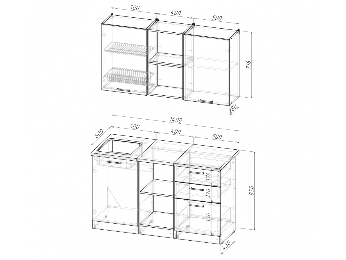 Внимание: стеновая панель, мойка, смеситель и посудосушители в комплекты гарнитура не входят.