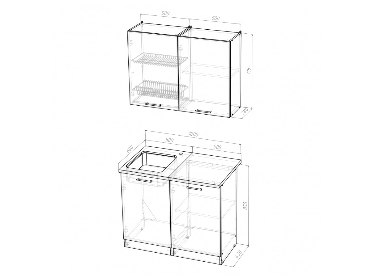 Внимание: стеновая панель, мойка, смеситель и посудосушители в комплекты гарнитура не входят.