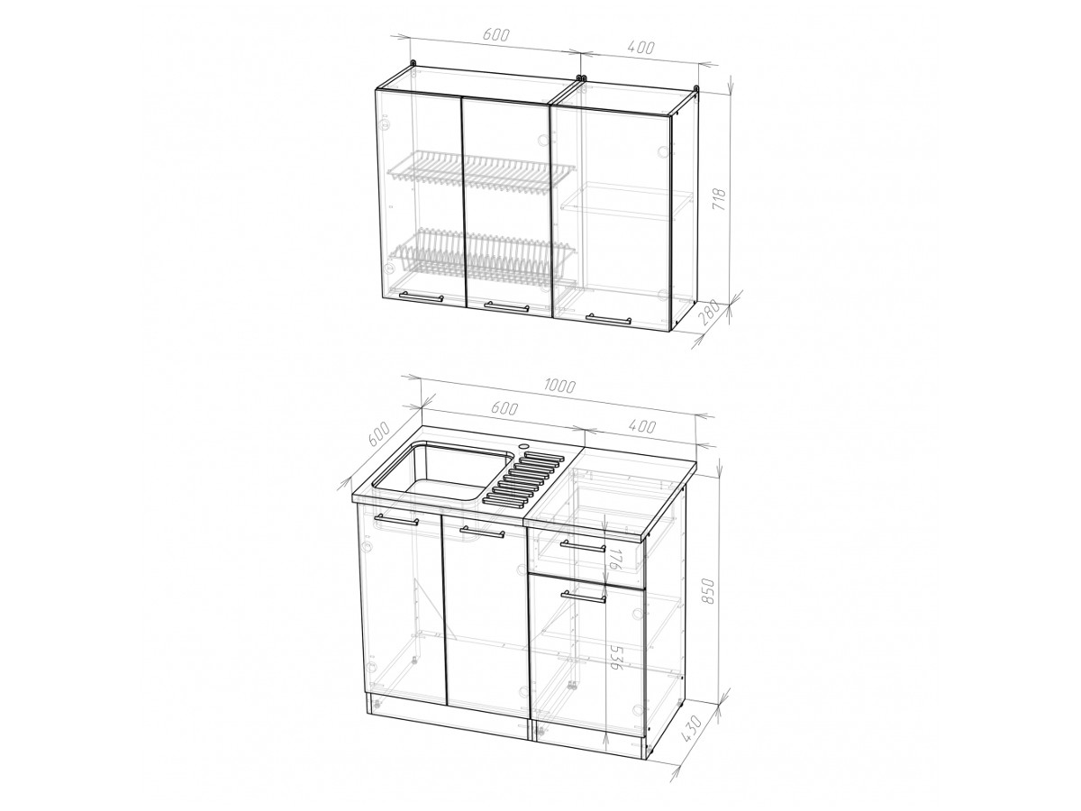 Внимание: стеновая панель, мойка, смеситель и посудосушители в комплекты гарнитура не входят.
