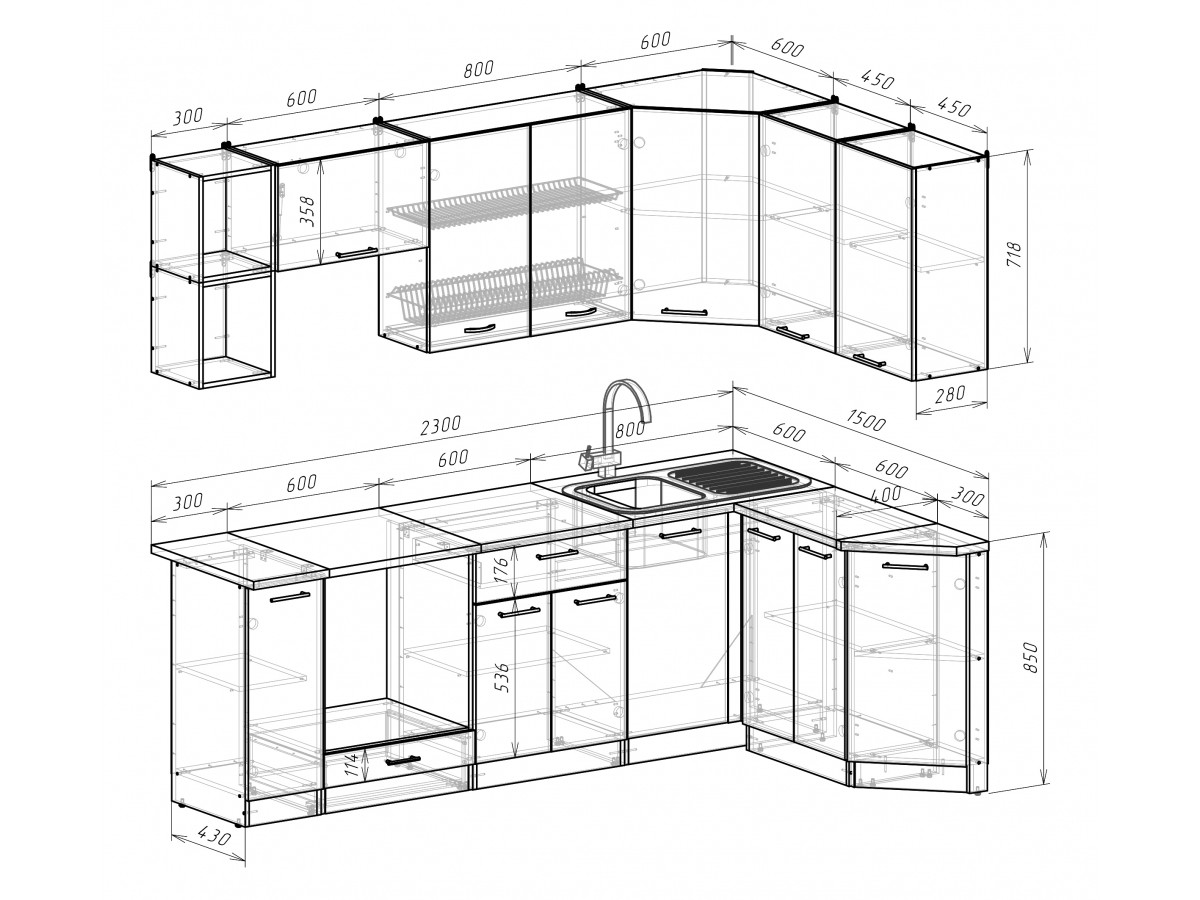 Внимание: стеновая панель, мойка, смеситель и посудосушители в комплекты гарнитура не входят.