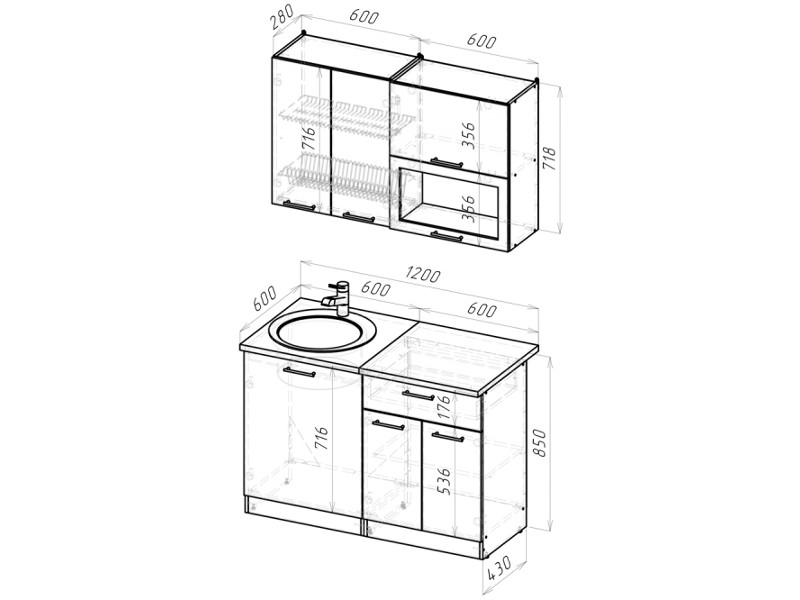 Внимание: стеновая панель, мойка, смеситель и посудосушители в комплекты гарнитура не входят.
