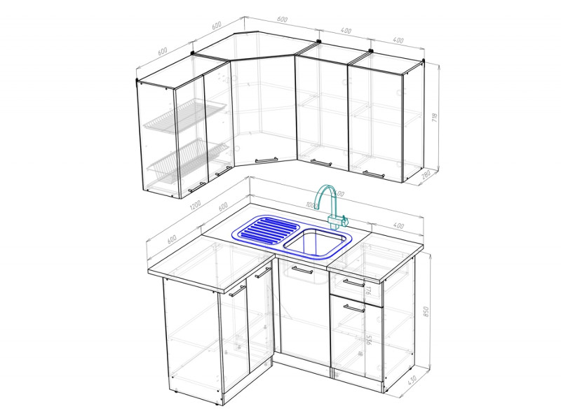 Внимание: стеновая панель, мойка, смеситель и посудосушители в комплекты гарнитура не входят.
